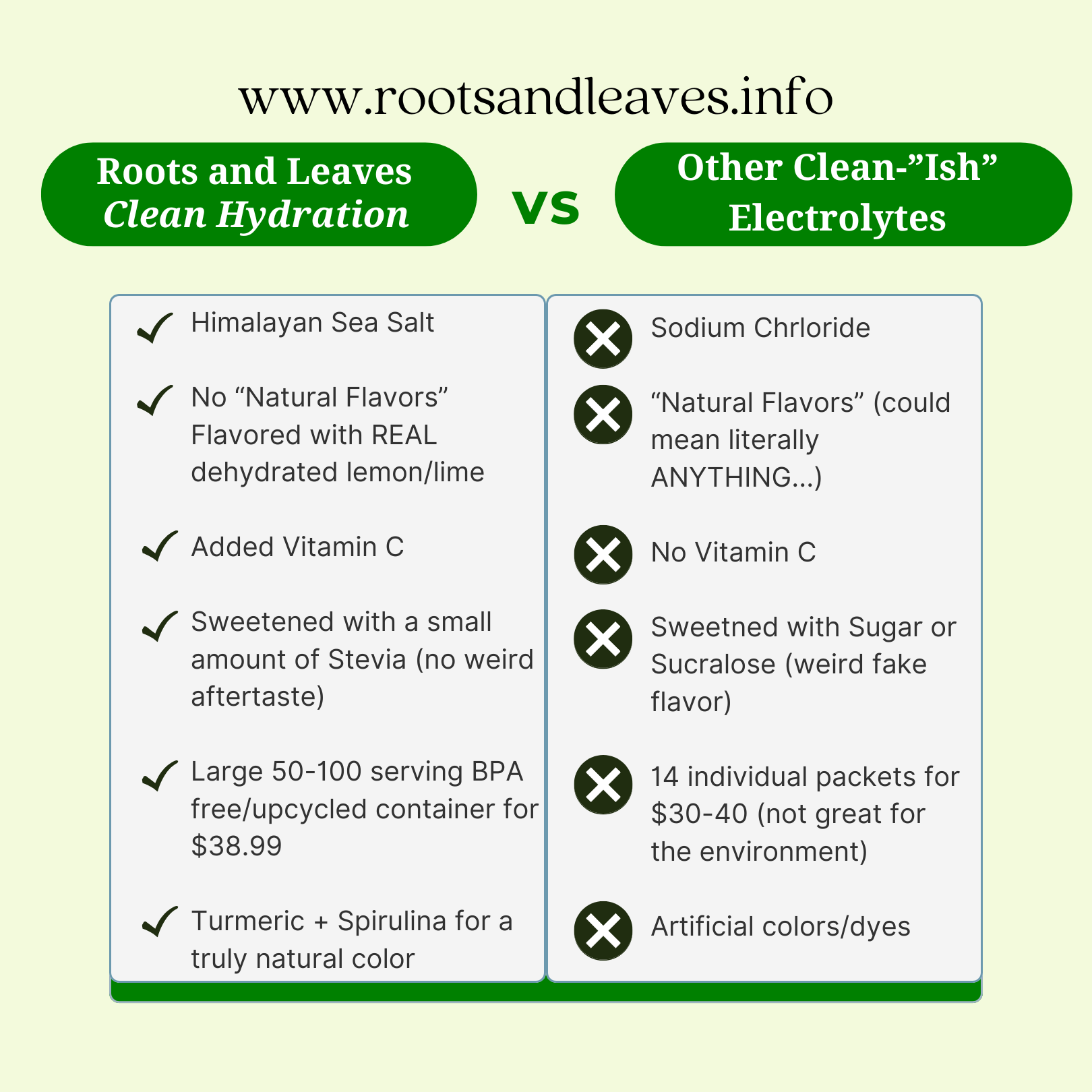 It uses Himalayan sea salt instead of sodium chloride, and the flavour comes from real dehydrated lemon and lime rather than lab-created additives. Almost all other brands rely on artificial flavourings or colours, while Roots and Leaves in Australia keeps the formula simple and real.
